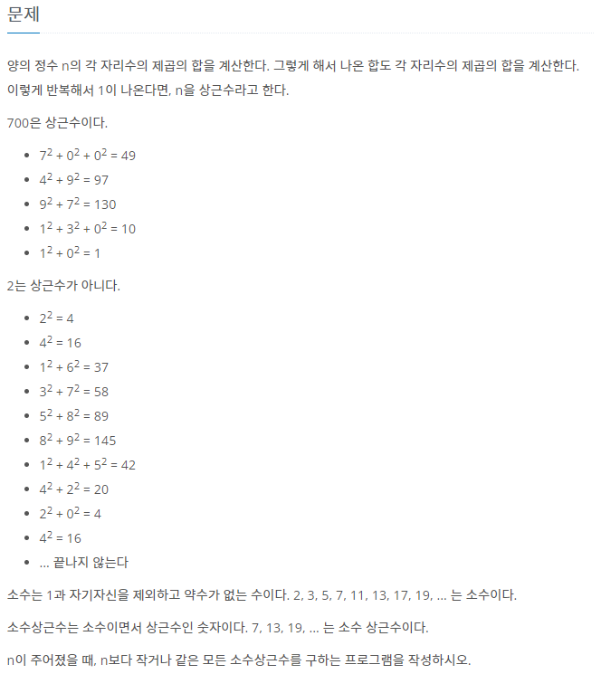 if temp == 1 or (len(visited[temp]) >= 1 and answer & visited[temp]): # 제곱의 합이 1이거나 이 합이 소수상근수가 되는 결과라면