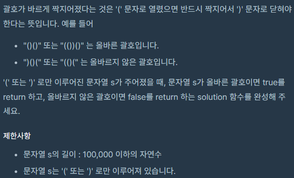 [프로그래머스] 올바른 괄호 - 파이썬(Python) 본문