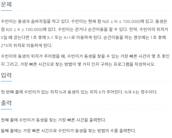 [파이썬, Python] 백준 12851번 : 숨바꼭질 2 본문