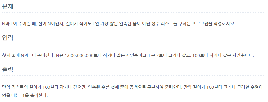 백준 1024번 : 수열의 합