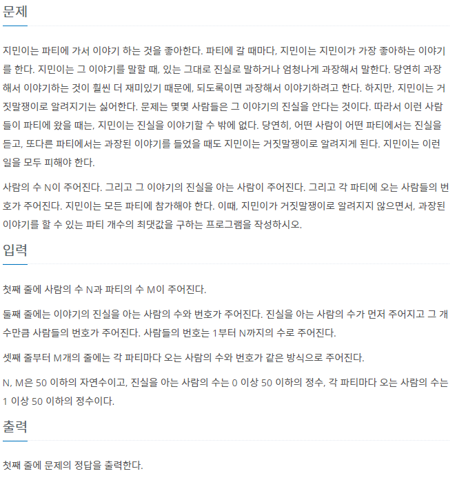 [파이썬, Python] 백준 1043번 : 거짓말 본문