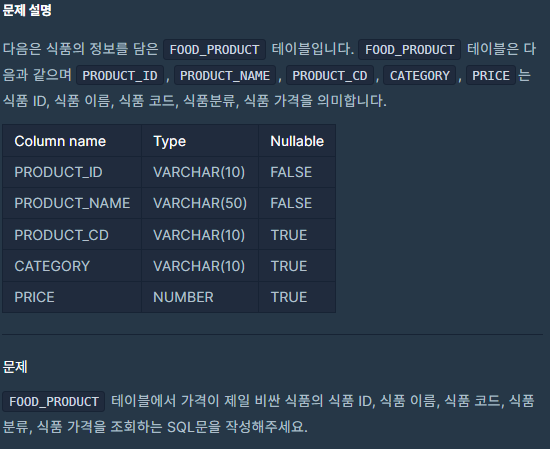 [프로그래머스] 가격이 제일 비싼 식품의 정보 출력하기 - MySQL