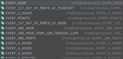 CronExpression.EVERY_HOUR # 1시간 간격마다(0 0-23/1 * * *)