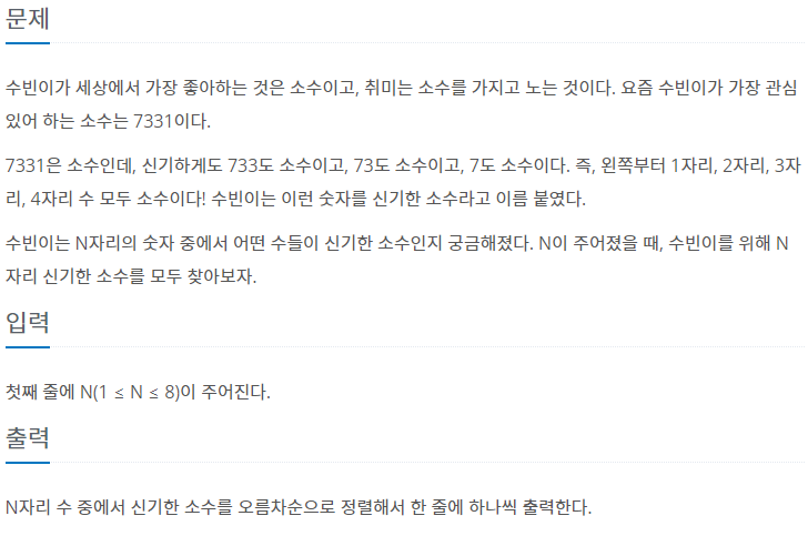 // 오른쪽에 숫자 하나씩 추가하며 N자리 신기한 소수 만들기
