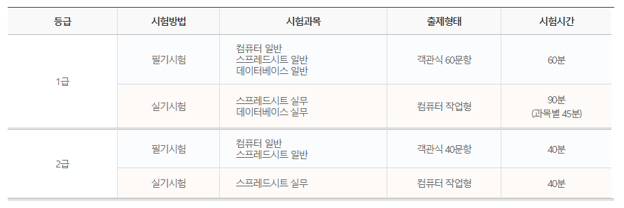 컴퓨터활용능력 종목 소개