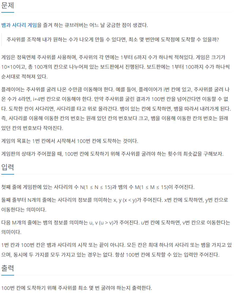 board[x] = y # 사다리와 뱀의 위치를 저장
