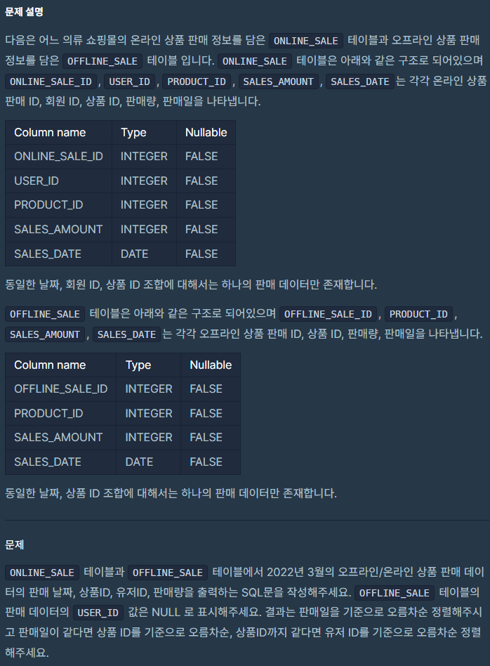 [프로그래머스] 오프라인/온라인 판매 데이터 통합하기 - MySQL 본문