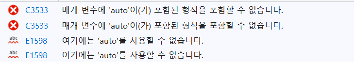 아래와 같이 auto 키워드는 함수 매개 변수와 함께 사용할 수 없다.