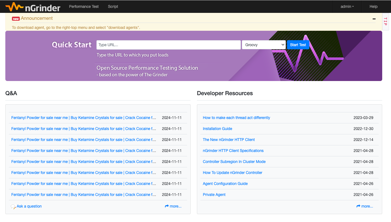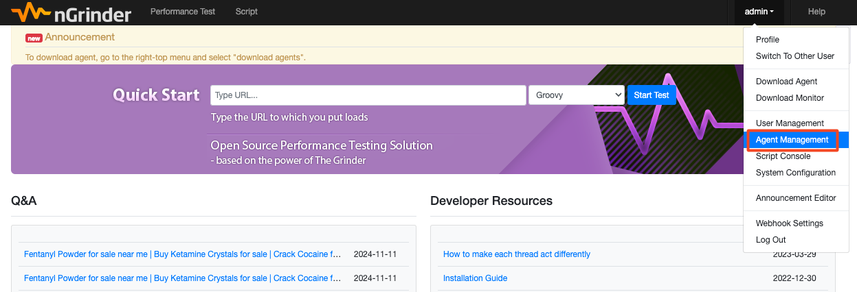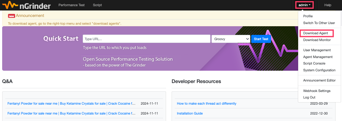 부하를 발생시키는 손발이 되어줄 agent 설정을 위해서 nGrinder 웹에서 Download Agent를 통해 agent를 다운받아줬다.