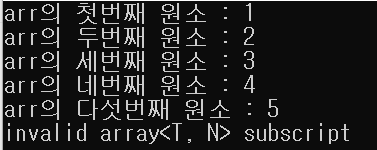 std::cout << "arr의 다섯번째 원소 : " << arr.at(4) << "\n";